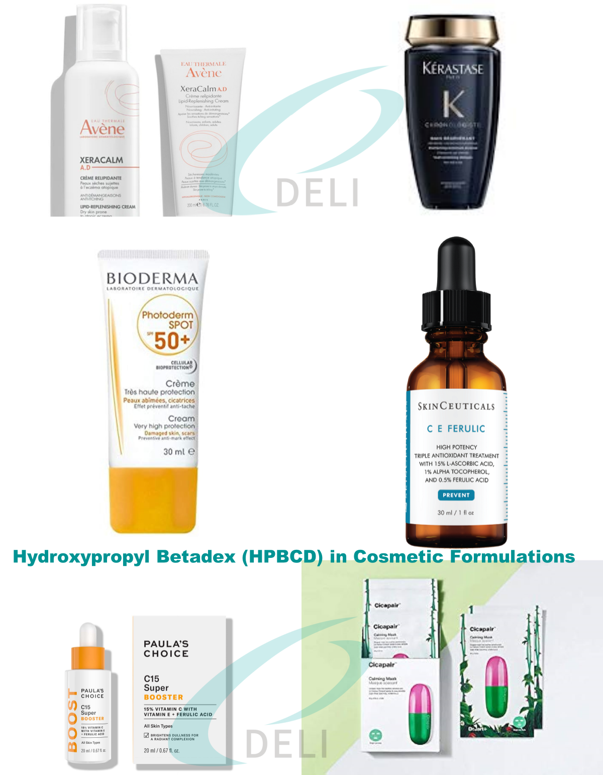 Gegenwärtig geben viele Kosmetik- und Hautpflegemarken die spezifischen Inhaltsstoffe (z. B. Hydroxypropyl Betacyclodextrin, HPBCD) nicht öffentlich offen, so Basierend auf öffentlich verfügbaren Literatur, Patenten und Branchenquellen sind jedoch einige eindeutig oder höchstwahrscheinliche Kategorien und Beispiele für Kosmetika und Hautpflegeprodukte, die HPBCD verwenden:
