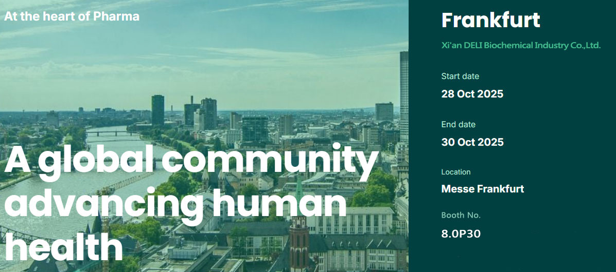 Xian Deli Biochemische Industrie Co., Ltd. wird an der CPhI Europe 2025 teilnehmen, die vom 28. bis 30. Oktober 2025 in Frankfurt, Deutschland, stattfindet.